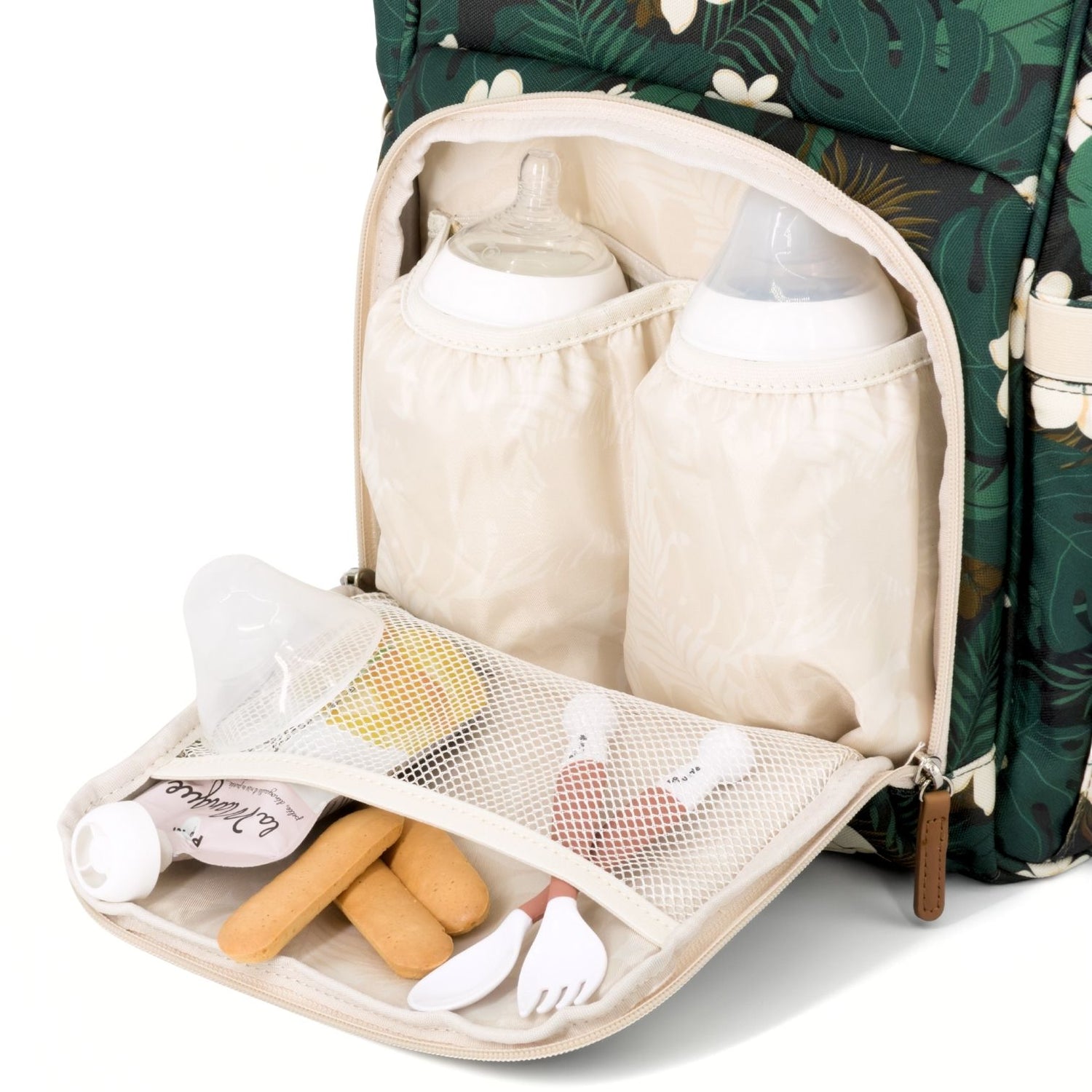 The bottom zipper closure is one of the main advantages of this diaper bag. Easily access the bottom of your bag without having to remove everything!